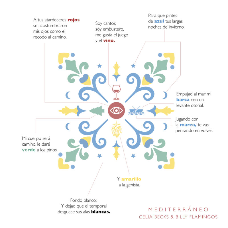 Diseño de portada para el single “Mediterráneo” de Celia Becks y Billy Flamingos en homenaje a Joan Manuel Serrat. Escuchar aquí.